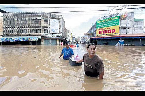 In der Gemeinde Pak Kwae retten sich die Bürger vor der Flut